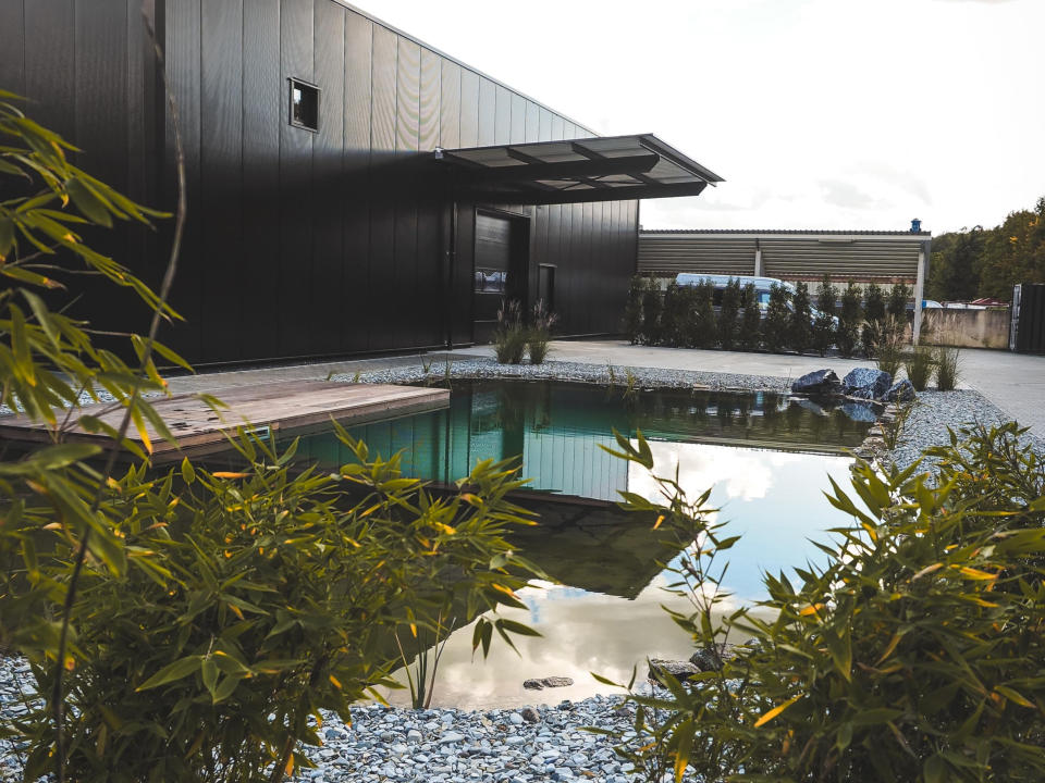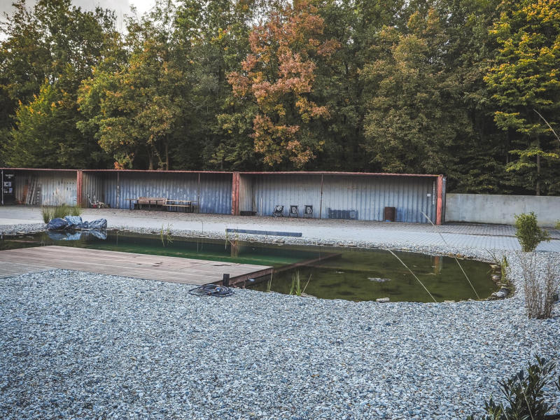 Naturpool und Grünflächen zum Entspannen und Verweilen ein. Hier vereinen