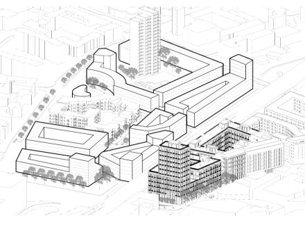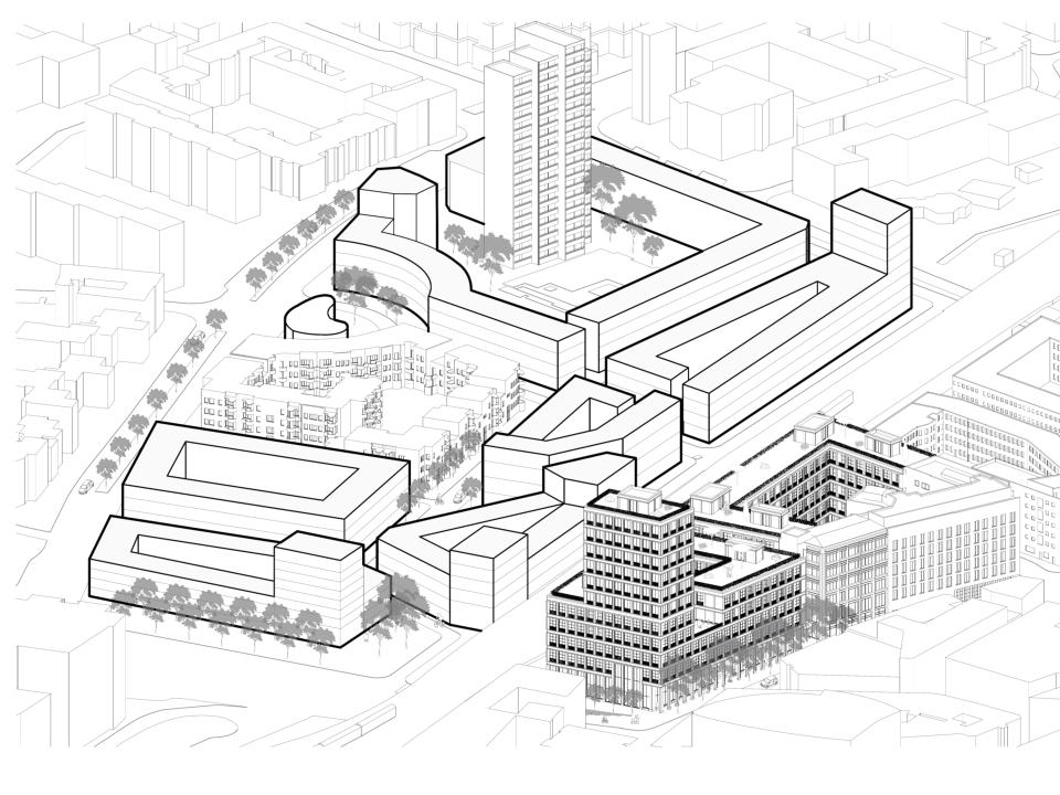 Angesichts des Schwarzplans und des zu transformierenden Stadtraums entstand der erste Bauabschnitt