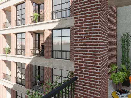 privatem Innenhofbereich und öffentlicher Straßenfassade erreicht wurde. Im zweiten Bauabschnitt